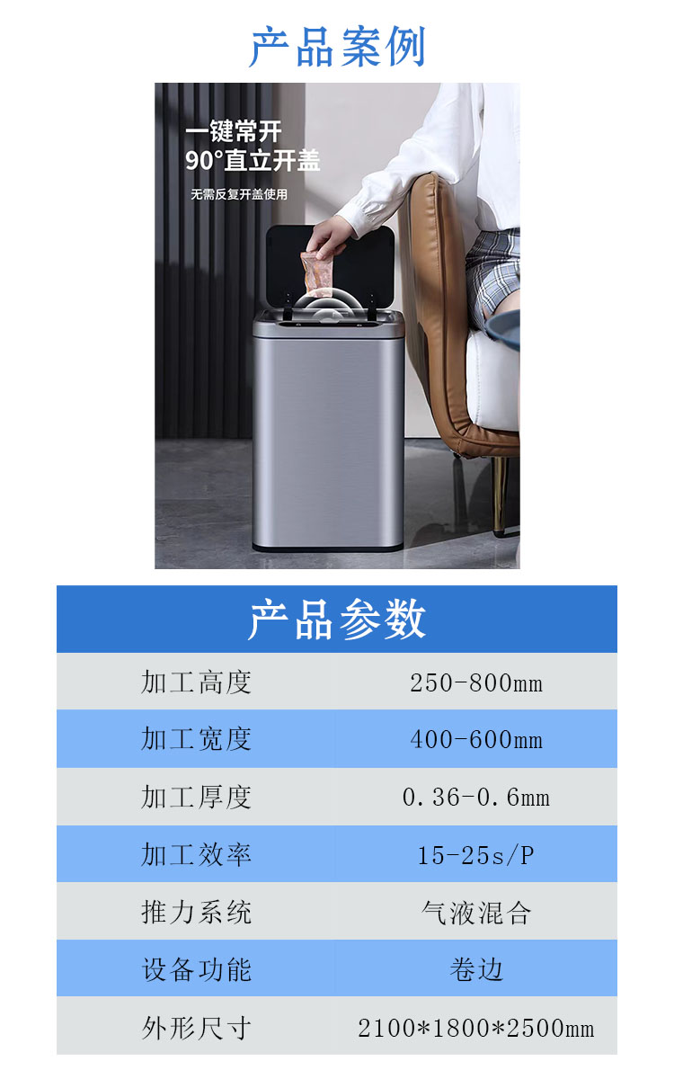 本文介紹的是一款異形雙頭卷邊機(jī),產(chǎn)品放進(jìn)模具中,按下自動(dòng)啟動(dòng)按鈕,模具推到固定位置,兩側(cè)推進(jìn)壓緊,上油缸推下碰到模具后漲緊產(chǎn)品上缸繼續(xù)往下推卷邊到設(shè)定位置,下油缸推上卷邊到設(shè)定位置,完成雙頭卷邊,全部上下油缸復(fù)位、左右氣缸復(fù)位,模具退出拿出產(chǎn)品。(公司根據(jù)客戶需求,為客戶量身定制適合的設(shè)備,歡迎新老客戶咨詢了解)